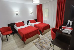 Hotelul nostru vă pune la dispoziție 19 camere și 6 apartamente (studio junior), însumând 43 de locuri de cazare. Locurile de cazare sunt dispuse pe 3 etaje, fiecare cu câte 4-5 camere. Astfel, nu vă veți găsi în situația de a fi deranjat de zgomotul din exterior.